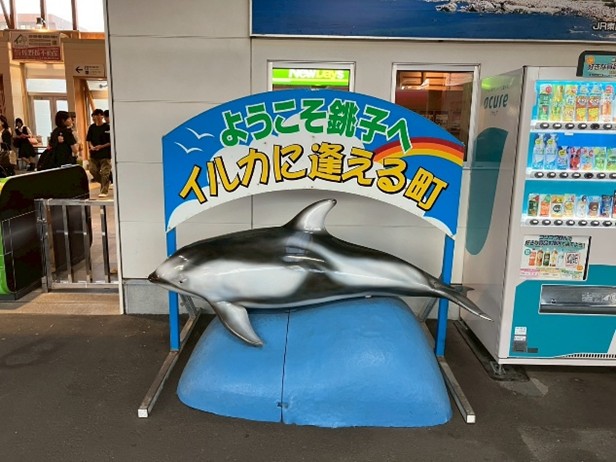 始めに、地球の丸く見える丘展望台という施設に訪れました。丘の上に位置している施設のため、洋上に設置されている風車や、銚子市の風景を360°眺めることができました。