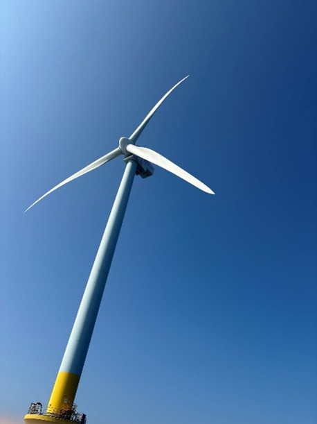 昼食を食べた後に船着き場まで移動し、実際の洋上にある風車を見学してきました。直前まで風が強く出航が難しい状態でしたが、なんとか船に乗ることができ実際の風車を間近で見ることができました。