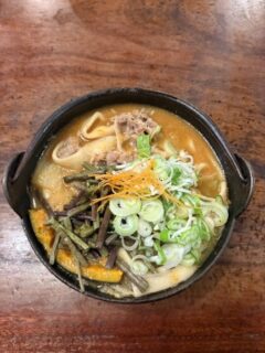現地では甲府城跡地をはじめとする甲府駅周辺の散策をしました。また夕食で甲府名物のほうとう(鴨肉入り)をいただき、うどん好きの私にはたまらない一品でした。