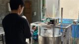攪拌翼を使わずに、容器の自転と公転の組み合わせのみで混合を行う遊星式攪拌の混合メカニズムを明らかにするために、容器内に液面を有する場合の流体運動に関する数値解析を行いました。容器を液体で満たした場合と比べて、液面がある場合には遠心力の影響で液面形状も変形し、容器内の流れが不安定になることで混合が促進することがわかりました。講演会はオンラインで開催されましたが、たくさんの質問やアドバイスをいただきました。